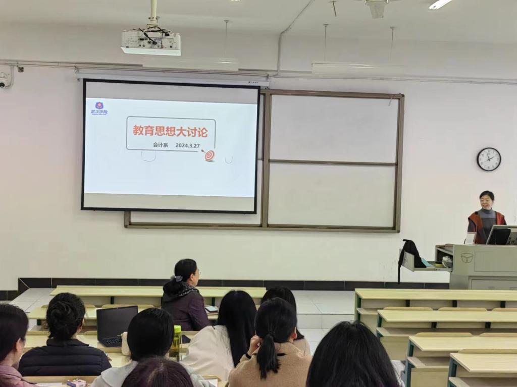 3月27日下午,会计系全体教师在学3205教室开展了教育思想大讨论活动。活动围绕习近平总书记关于教育的重要论述、湖北省教育数字化战略行动、新增硕士学位授权单位基本条件,高质量发展阶段下特色专业创新发展等四个方面的内容展开了学习与讨论。活动由会计系副主任罗翠英主持。