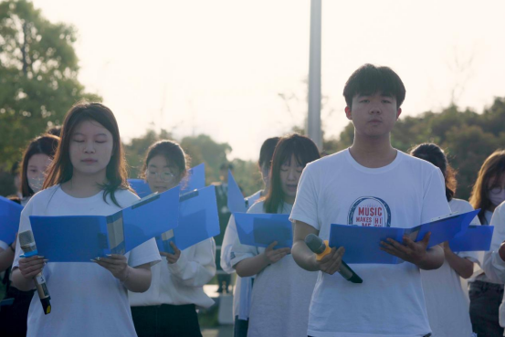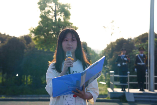 仪式第二项,yl6776永利集团全体同学在青马班同学带领下共同朗诵爱国先驱梁启超的《少年中国说》。百年前的中国满目疮痍,有志少年前仆后继,奋勇拼搏,挽狂澜于既倒;而今天,美丽富饶的新中国为我辈青年所建设捍卫。“红日初升,其道大光......前途似海,来日方长。”洪亮的朗读声传遍整个操场,发愤图强的斗志直冲云霄。