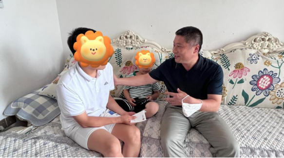 此次家访的学生,学院一直在关心、牵挂着。小刘同学是一名由于出生时大脑缺血缺氧导致后面肢体功能轻微失调的学生,但他却阳光向上。2022年下学期学校因新冠疫情封控期间,当天晚上小刘第一时间报名参加学院志愿者帮助他人,但是在一个下午,匆忙准备去进行志愿者送餐的他,被床帘绊下了床,导致右侧尺骨上段骨折,右肘关节脱位。尽管这样,他还是每天一边在医院治疗,一边克服困难积极学习。