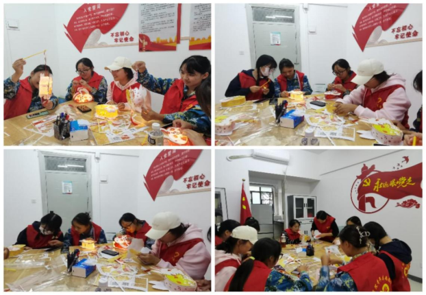 (志愿者们正在学做花灯)