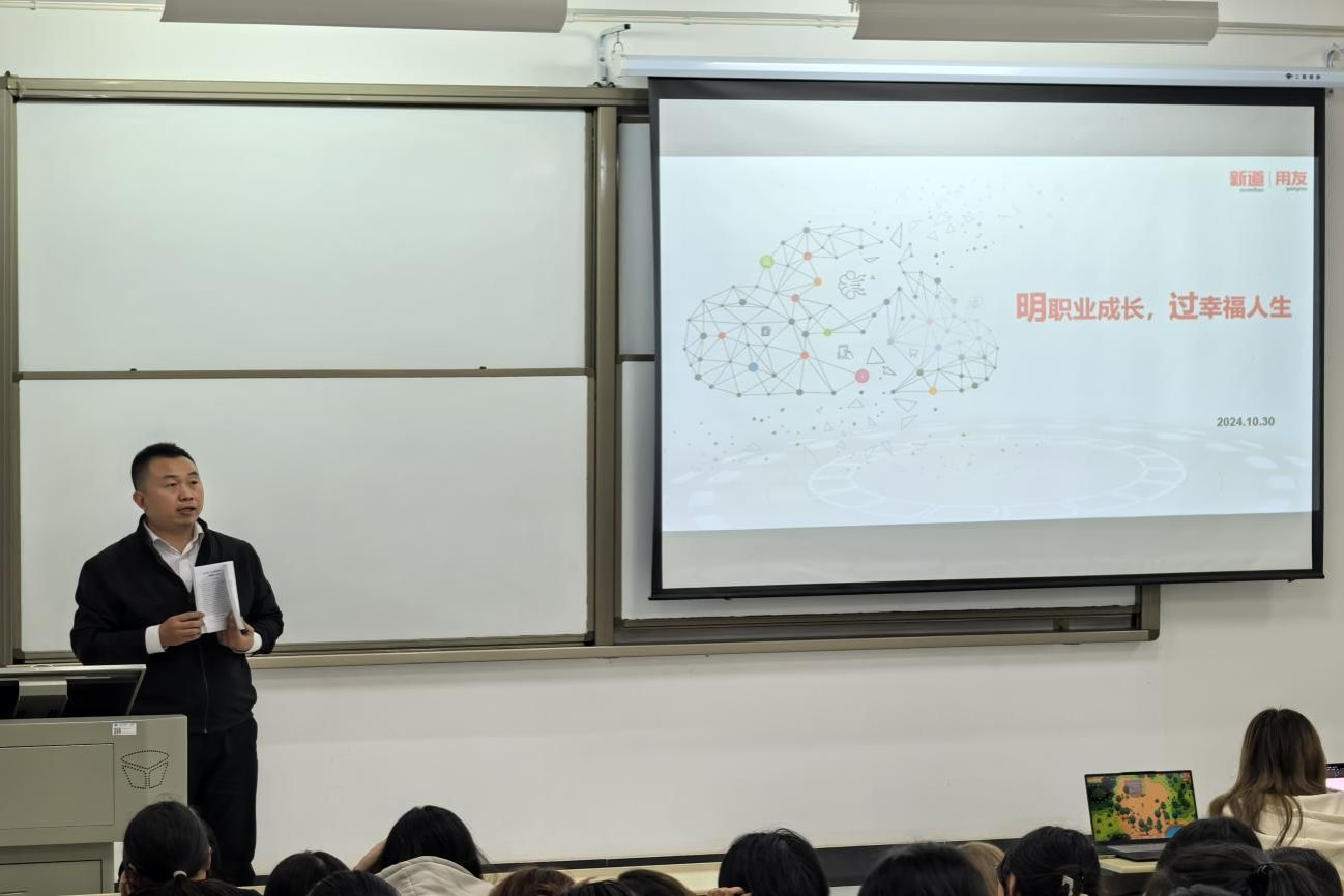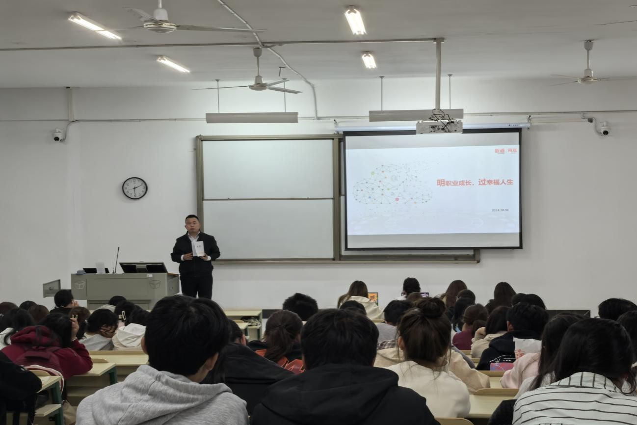 10月30日晚18点,新道科技股份有限公司湖北分公司教学服务总监张锋军为2024级新生在学3206室开展了十月份讲座。此次活动旨在为学生提供专业的职业规划指导,帮助他们更好地在财务管理领域找到定位,规划未来。