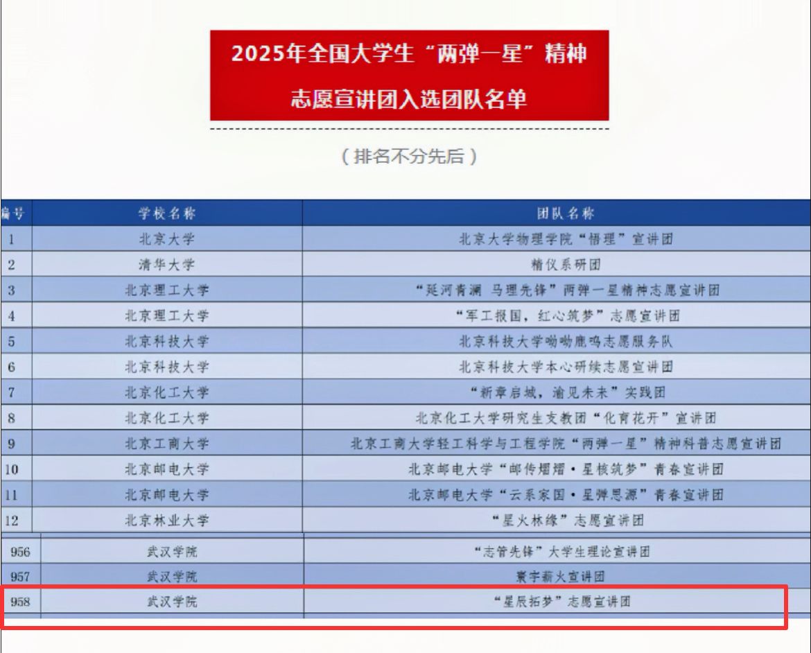 (2025年全国大学生“两弹一星”精神志愿宣讲团名单公示)