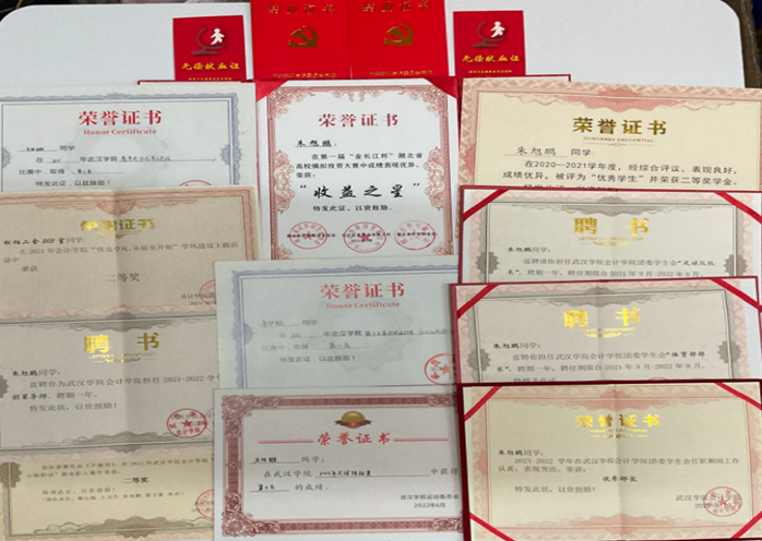 课业之下,朱旭鹏同学积极参加了湖北省高校模拟投资大赛,在学院的组织培训和帮助下,他学习了投资相关知识,了解了实操流程。经过6个月的比赛交易期,朱旭鹏获得周奖、月奖,并凭借超高收益,在赛事结束后被评选为收益之星。