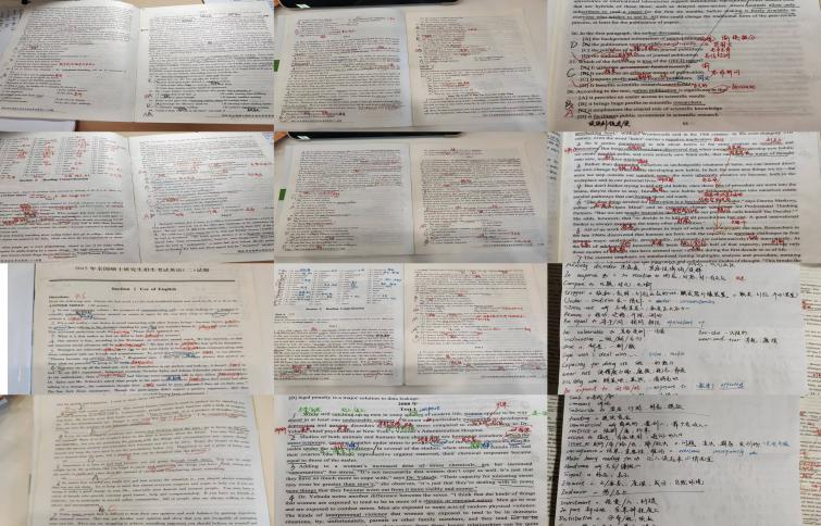 第二,考研英语只做真题就够了。我按照阅读—完形—新题型—翻译—作文的顺序,分题型看网课,学完方法论之后开始做真题,做完一道题后查生词并且记下,补充进单词书里反复背。对哪一道题有疑问再去看这道题的网课解析。网课老师一般选网上名气高的那几个,可以多看看,选择适合自己的。