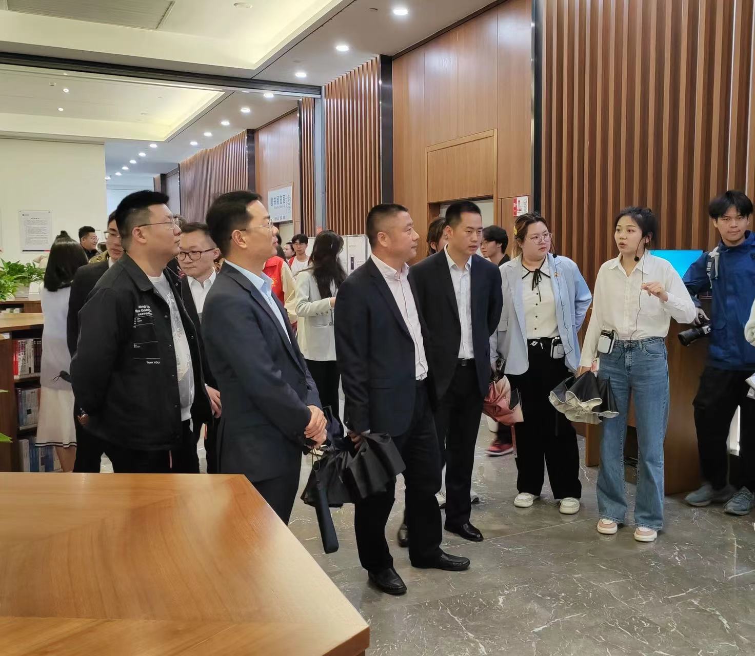 (校友一行人参观图书馆)