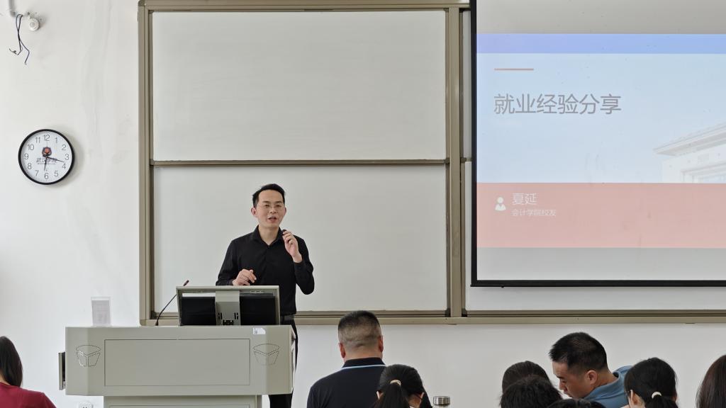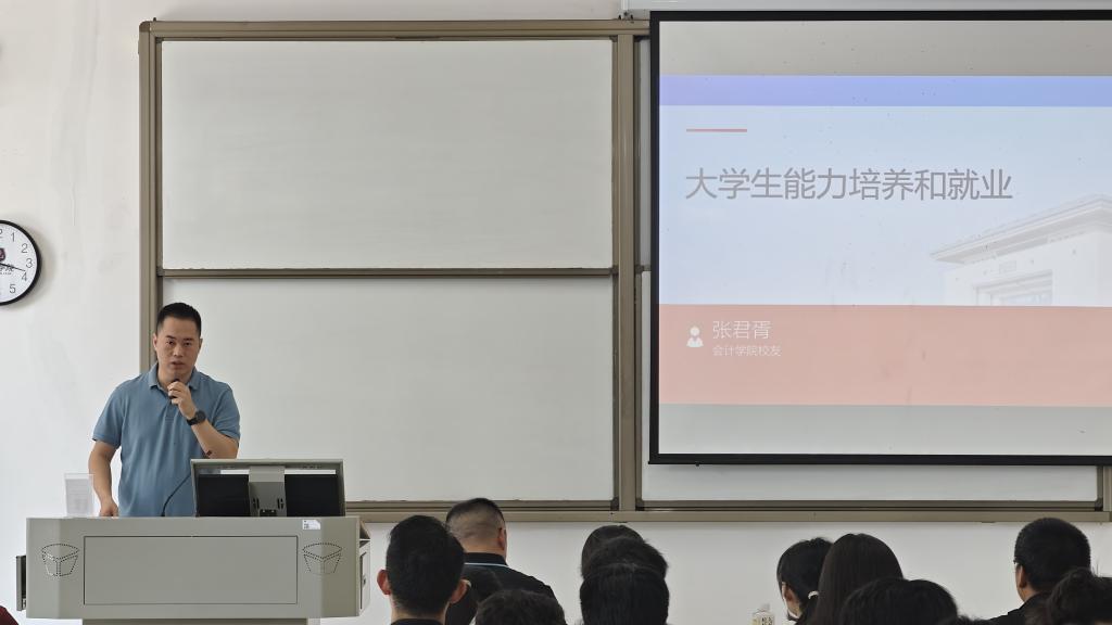 随后,校友们移步至3101教室,参加第二期“校友大讲堂”活动。毕业多年的张君胥和夏延两位校友从不同角度分享了自己的职场经验和体会,范喜军主持本次讲堂活动,并根据两位校友的分享,结合学院实际对下一步学院工作进行了安排部署。