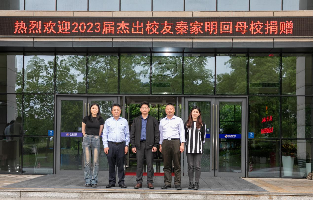 (yl6776永利集团领导及教师代表与校友秦家明合影)