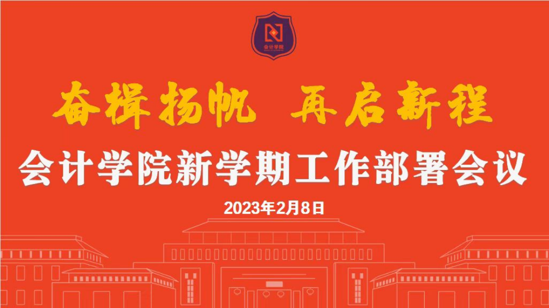 院长谢进城首先对学院2022年度工作进行简要回顾,在此基础上明确了2023年学院工作的目标、思路及重点。他表示,2022年在全体教职工的共同努力奋斗下,学院实现了跨越式发展,取得了可喜成绩,再次被学校评为年度优秀单位,功劳和荣耀归属于全体会计人!今天,新的学年伴随春天的脚步已悄然来到,希望全院教职工迅速收心归位,提振精神重新出发,抓住三年来疫情管控首次放开的机遇,真抓实干,争先创优,努力使各项工作再上一层楼。他指出,学院今年的工作重点将围绕迎评促建、评估整改、优秀人才引进与培养、提升科研创新能力、加强专业学科群和核心课程建设、学风与班级建设、招生就业工作、迎接二十周年校庆等方面开展,其中评建工作是重中之重。他指出,要严格按照学校的相关指示精神,慎终如始、毫不松懈,坚持问题导向,在压实责任中抓落实,为实现年终目标奠定坚实基础。同时他强调,临近开学要做好学生返校的各项准备工作,要关心学生的心理健康和思想状态,齐抓共管做好期初考试工作,精心组织开展考前辅导,营造良好校园氛围,缓解学生心理压力,端正考试态度,增强学生考试信心;提前做好上课第一周的准备工作,保证课堂教学秩序,确保课堂教学正常开展。