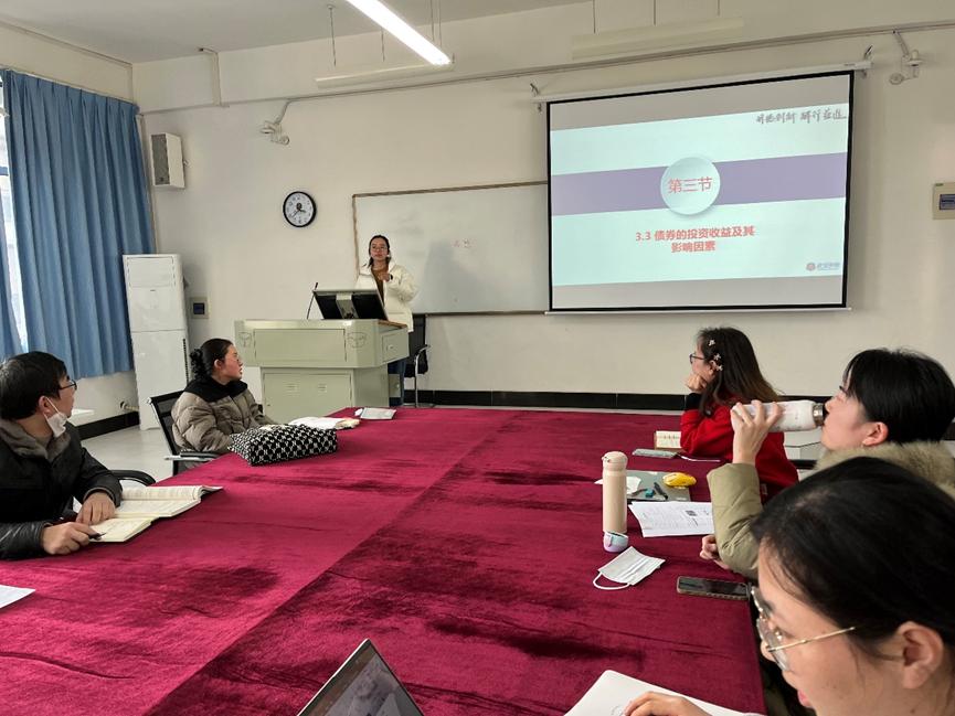何碧莹老师本次磨课的课程是《中级财务管理》,本次课堂内容是债券的投资收益及其影响因素。何老师讲完后得到了在场老师的表扬和认可,尤其是PPT制作技术值得学习。刘瑞老师建议板书可以边讲边写,不要留空白;胡小波老师提出应该融入课堂思政。