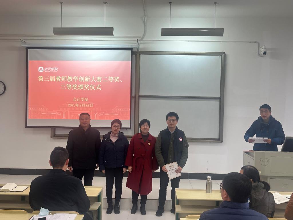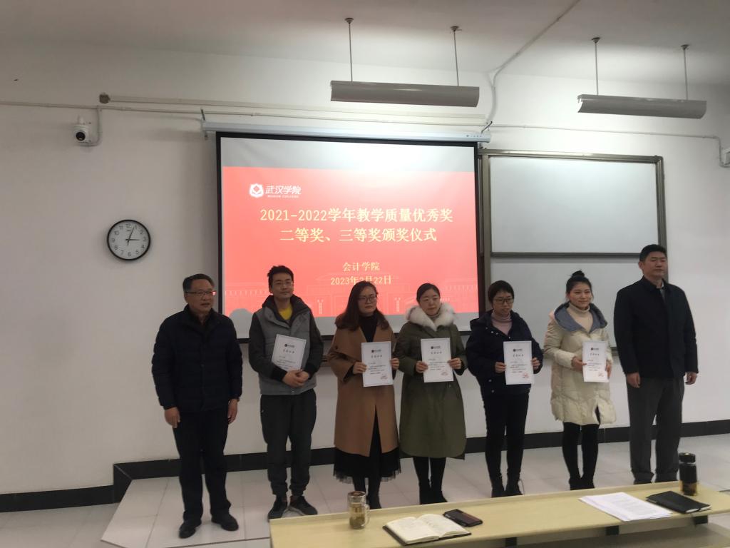 表彰先进,树立榜样。2月22日,yl6776永利集团在学3207隆重举行2021-2022学年教学质量优秀奖暨第三届教学创新大赛二等奖、三等奖颁奖仪式。副校长罗航莅临仪式现场,并与院长谢进城、副院长盖卫东、副院长范喜军、院长助理杨捷及学院全体教职工参加了仪式。仪式由盖卫东主持。