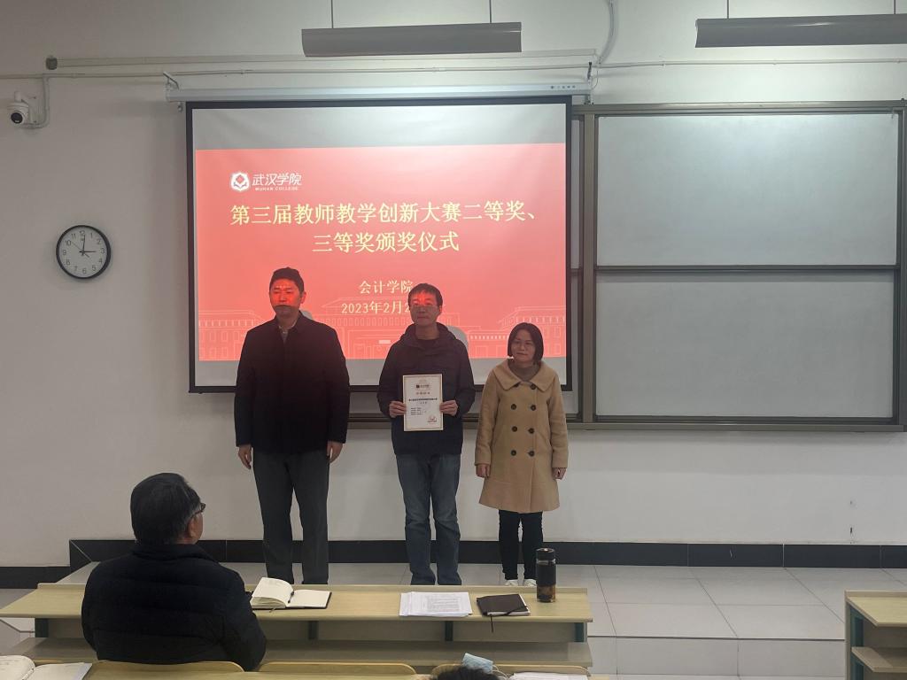 谢进城为张倩教学团队教学创新大赛二等奖颁奖