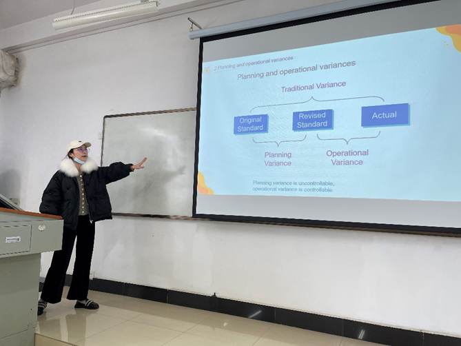 徐雨薇老师磨课课程为《P1管理会计》,讲授内容为Chapter 6 Further Variance Analysis,英文流利教案讲稿准备充分。金健老师建议课件中字数不宜过多,同时增加板书的建议。程款老师建议在课前回顾环节增加提问互动的方式帮助学生回顾知识点。