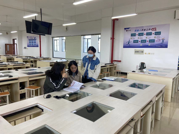李文霞老师在给何雨清、谢园园进行授课指导