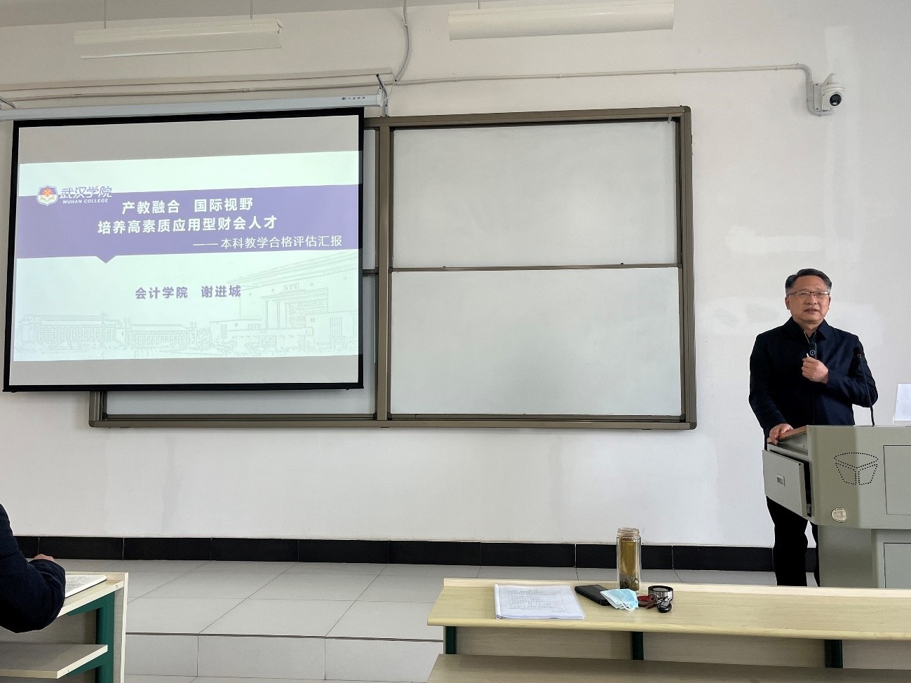 (谢进城为老师们宣讲学院工作思路)