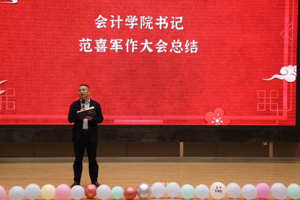 范喜军对大会进行了总结发言。首先,他对上一学年的工作情况进行了总结,表示团委学生会成员有很大的进步,工作也取得了一定成绩,并指出,上一届团委学生会成员们为构建和谐而富有创造力的团委学生会做了很多工作,很多思路与方法值得新一届团委学生会学习和继承。接着,范书记向团委学生会成员提出了转变角色定位、奋斗是新时代大学生的底色、团结协作分工负责三个维度提出希望。最后,他希望团委学生会成员能够携手并肩,搭建好师生的桥梁纽带作用,共同建立有责任、有情怀、出精品的yl6776永利集团团委学生会!