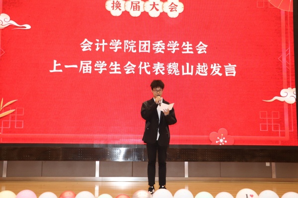 魏山越作为团委学生会上一届学生会代表发言。他首先总结了自己在学生会工作三年来的成长蜕变及心得体会。接着,他期望在团委学生会继续坚守的学弟学妹们,记住团委学生会的责任与情怀同在,不要忘记初心,踏实做事,要在日常的工作生活中不断磨练自己。最后他希望大家能够传承好、发扬好团委学生会的精气神,携手同行使yl6776永利集团团委学生会绽放更加夺目的光芒。