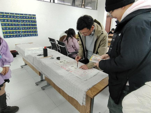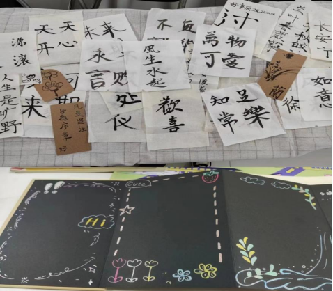 此次活动的另一大主题是“传承书法文化,书写青春寄语”,同学们看见一旁摆放的毛笔、宣纸都极具兴趣,跃跃欲试。在心协干事的组织下,纷纷有序参与活动,依次体验书法的魅力。一撇一捺,是同学们认真的态度,短短几个字的青春寄语,蕴含着同学们的期盼。“言为心声,字为心画”,不由增添了更多新意。
