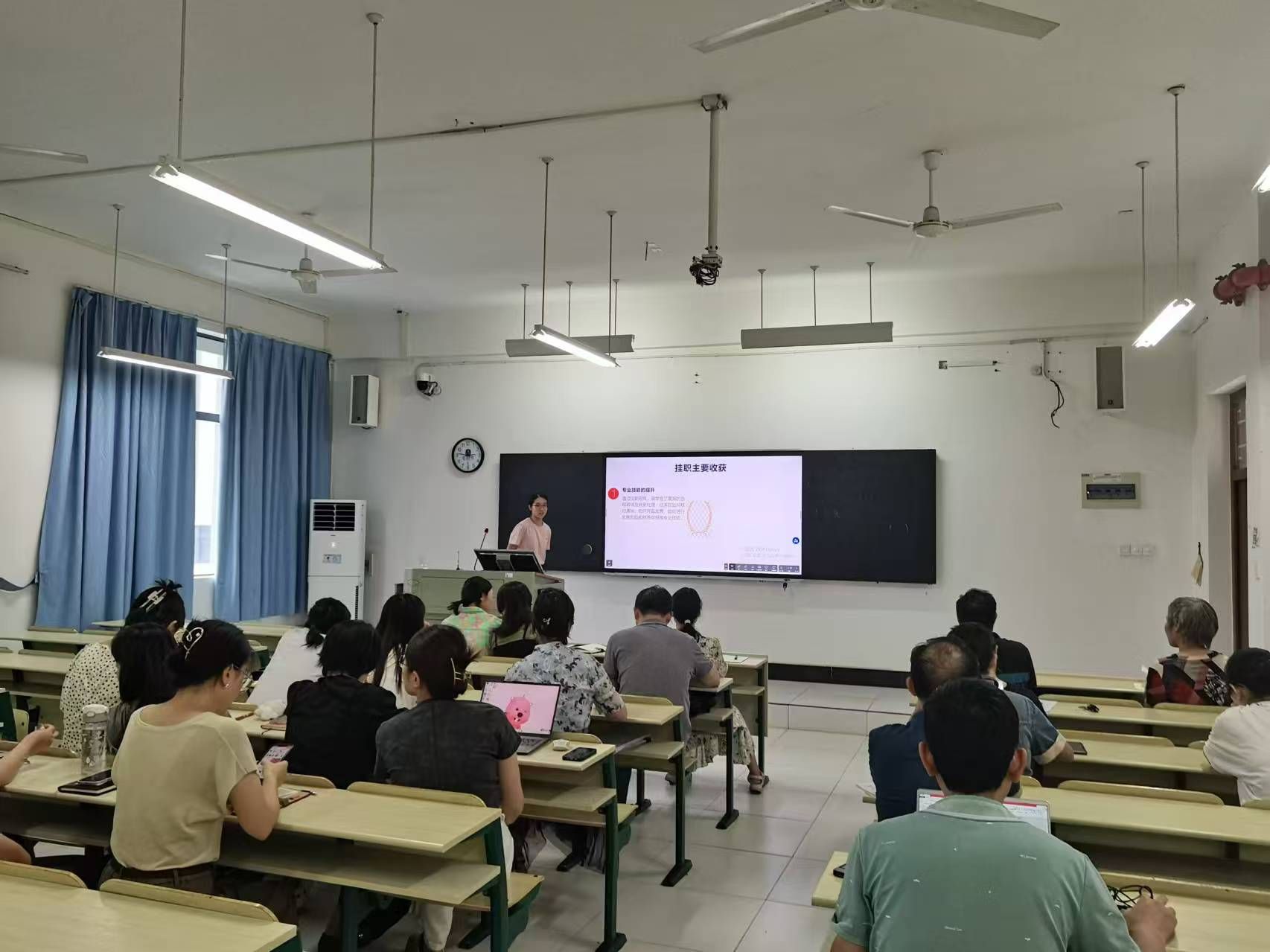 商金梅和徐漫分享了在武汉华仲生物科技有限公司挂职锻炼期间的工作内容和心得体会。在挂职期间,两位教师积极参与公司的日常账务处理、财务报表编制、税务申报及财务管理等工作,凭借扎实的专业知识和严谨的工作态度,迅速熟悉了公司的业务流程,在实践中不断提升自己的业务能力。
