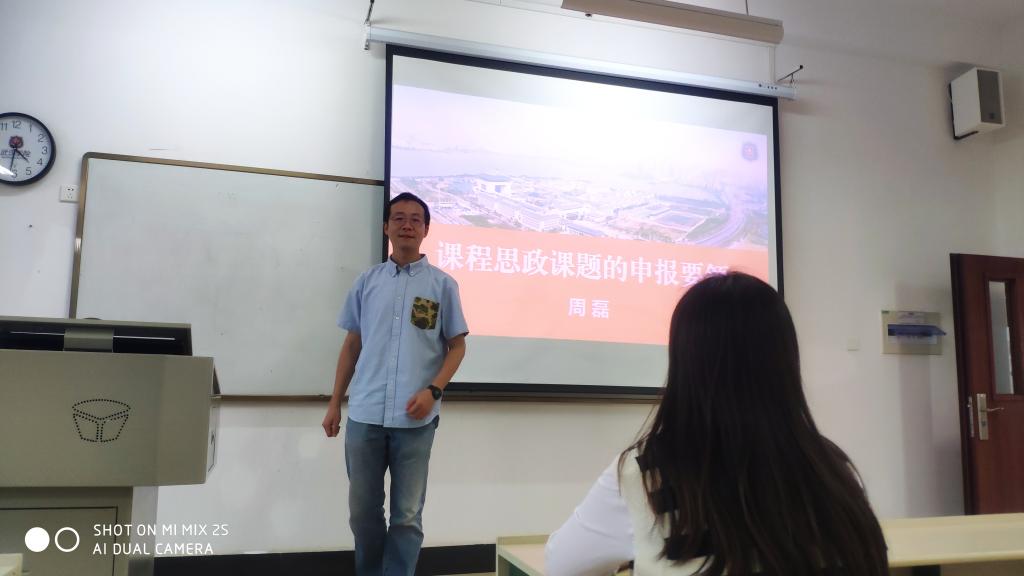 周磊副教授以《课程思政课题的申报要领》为主题做了科研分享。“学道须当猛烈,始终确守初心”,他从自己第一次科研经验开始讲述,娓娓道来,声情并茂的给老师们讲述如何从一名对科研小白教师成长为一名具有科研能力的科研工作者的经历,他接地气的讲述方式,让年轻老师们感同身受,对科研充满了信心;通过对近四年国社科(思政专项)和教育部课题关于课程思政主题的立项情况进行梳理,并根据自己丰富的科研经验提出申报课程思政相关课题应注意的事项,帮助申请课程思政课题的老师们少走弯路;以《“三全育人”视域下高校课程思政实践路径研究》为例,给老师们提供了申报课程思政相关课题研究方向的建议,让老师们受益匪浅,收获满满。