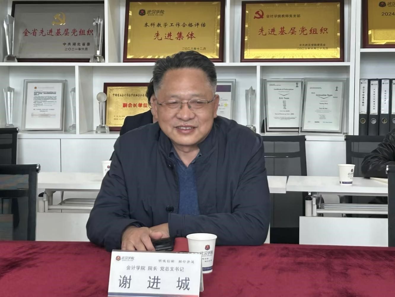 座谈会上,谢进城对许世林一行的到访表示热烈欢迎,并详细介绍了我院的办学历程、发展现状、办学特色及育人成效。他重点阐述了学院依托中南财经政法大学优质学科资源,在教学改革方面的探索与实践,着重讲解了“业财合一”“数智转型产教融合”“国际化”三大核心改革方向的具体举措,强调学院始终将实践能力培养贯穿人才培养全过程,致力于打造兼具专业素养与实践能力的应用型财会人才。