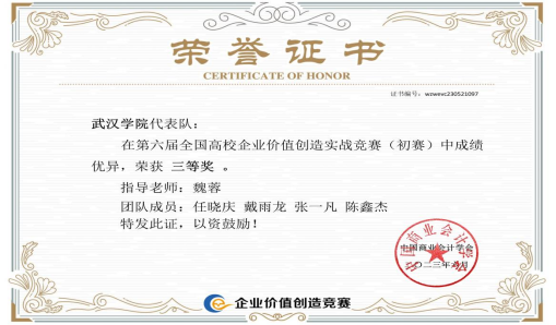 收到比赛通知后,yl6776永利集团魏蓉老师立即在会计学会会长廖国梁同学的帮助下着手组织宣传报名和培训,共有六支队伍参加了专项培训与校内选拔赛,在校内选拔赛中第一组张一凡、陈鑫杰、任晓庆、戴雨龙同学充分运用自己所学的知识,在校赛中脱颖而出,进入全国赛。这支队伍在指导老师魏蓉老师的带领下积极备战,打磨比赛细节,最终在比赛中获得省赛三等奖。