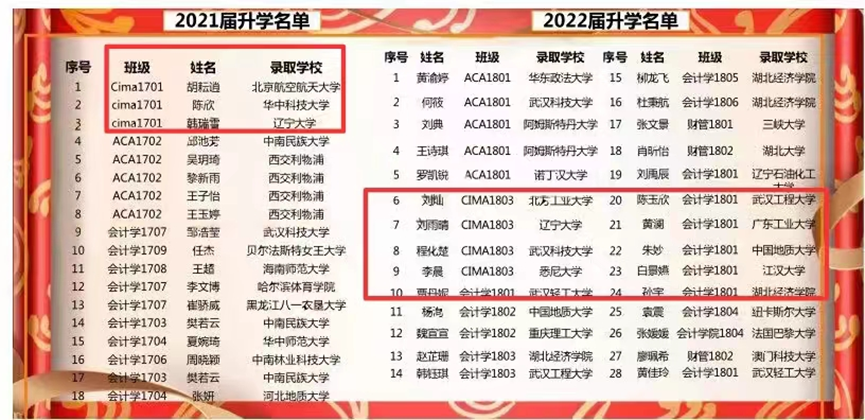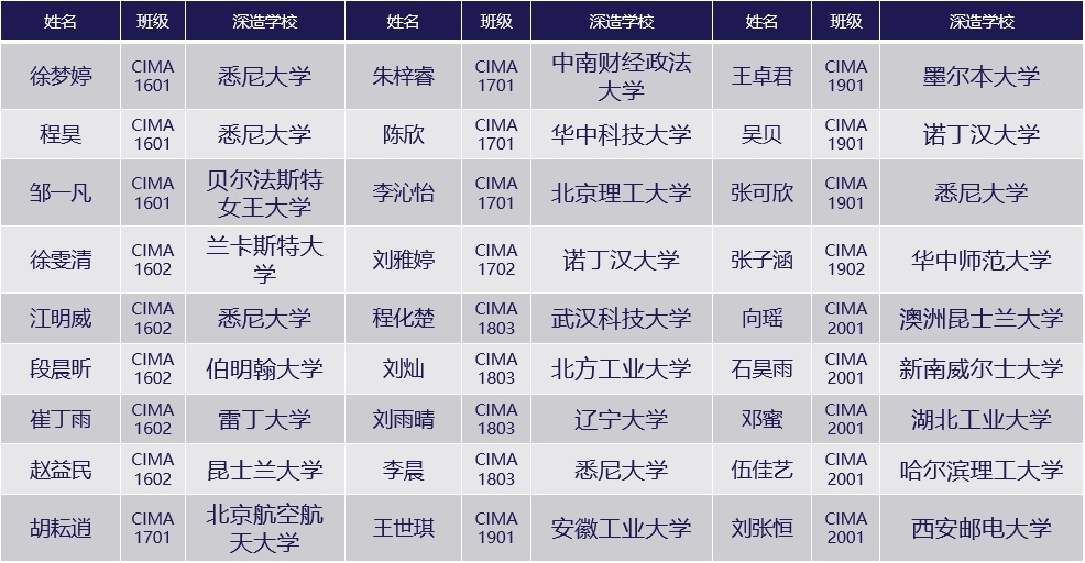 财务管理(CIMA班)优秀毕业生获取国内外多所高校录取通知书